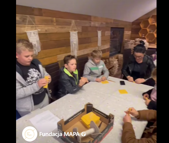 Następnie uczestnicy wyruszyli w ekscytującą misję – wspólnie szukaliśmy wskazówek, które miały otworzyć drzwi do Miodowego Królestwa. To magiczne miejsce skrywało niespodziankę: warsztaty, podczas których każdy mógł własnoręcznie wykonać piękną świeczkę.